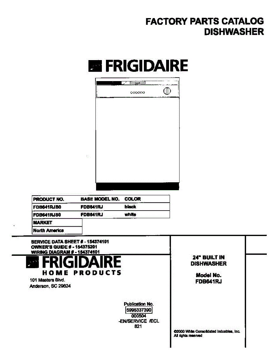 Parts for Frigidaire FDB641RJB0: 01 - Cover Parts