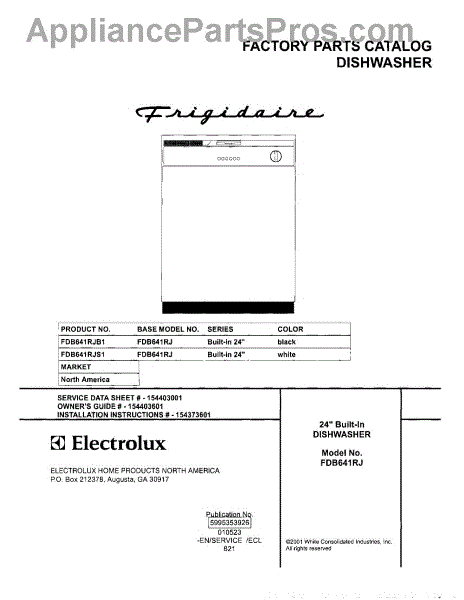 Parts for Frigidaire FDB641RJB1: 01 - Cover Parts