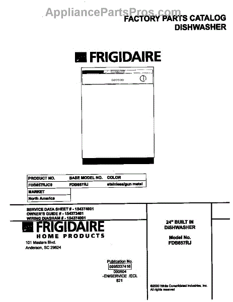 Parts for Frigidaire FDB657RJC0: 01 - Cover Parts