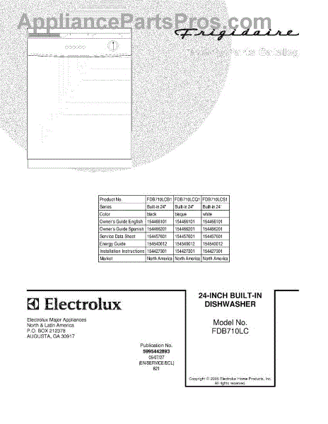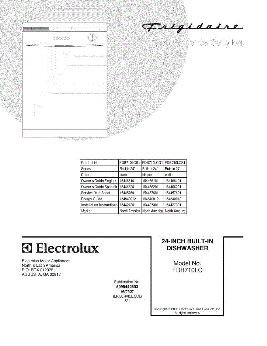 Parts for Frigidaire FDB710LCB1: 01 - Cover Parts