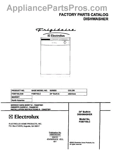 Parts for Frigidaire FDB710LCC0: 01 - Cover Parts