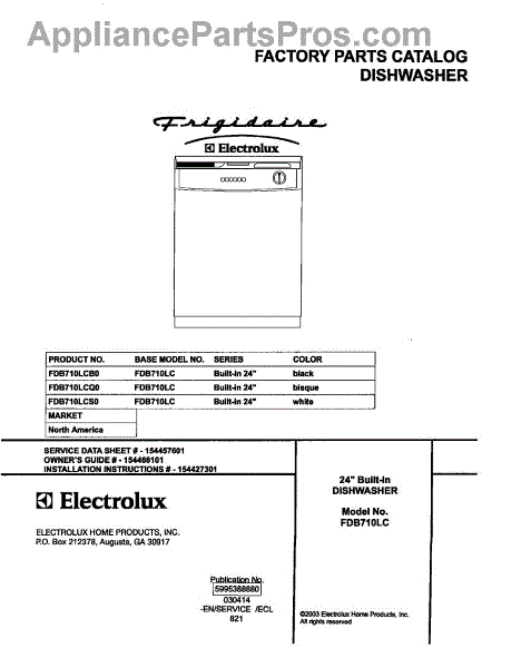 Parts for Frigidaire FDB710LCQ0: 01 - Cover Parts