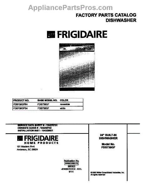 Parts for Frigidaire FDB736GFS4: 01 - Cover Parts