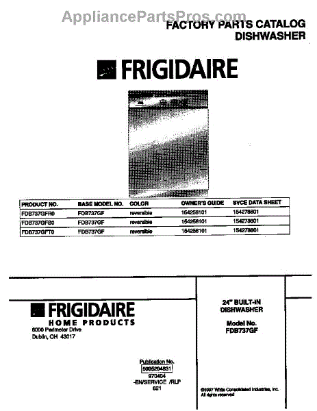 Parts for Frigidaire FDB737GFR0: 01 - Cover Parts