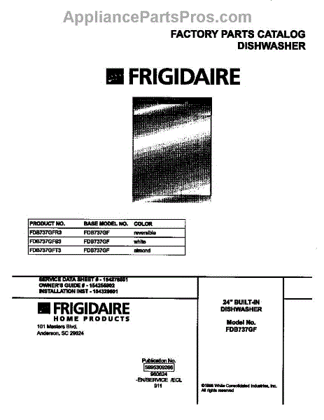 Parts for Frigidaire FDB737GFR3: 01 - Cover Parts