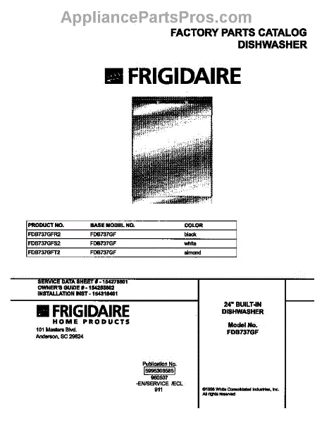 Parts for Frigidaire FDB737GFT2: 01 - Cover Parts