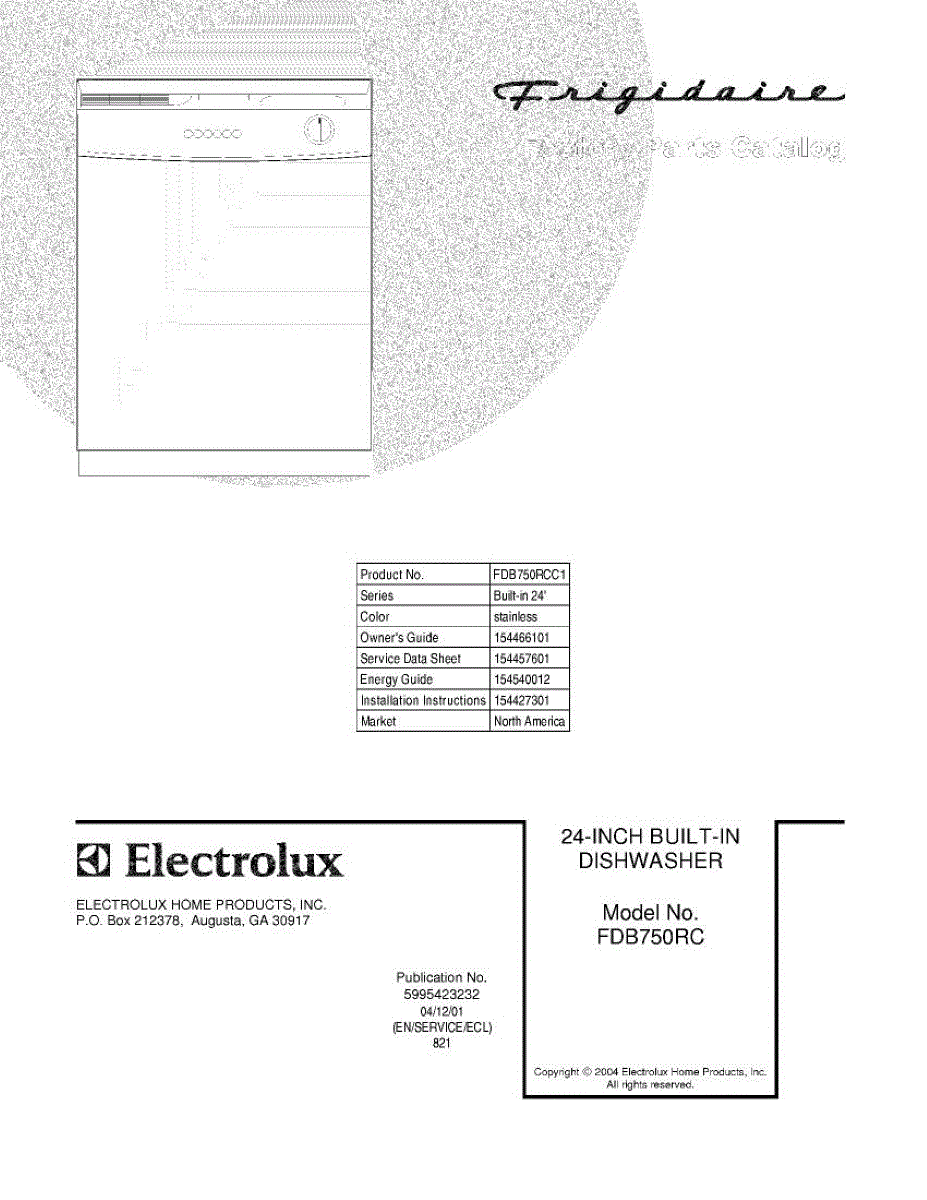 Parts for Frigidaire FDB750RCC1: 01 - Cover Parts