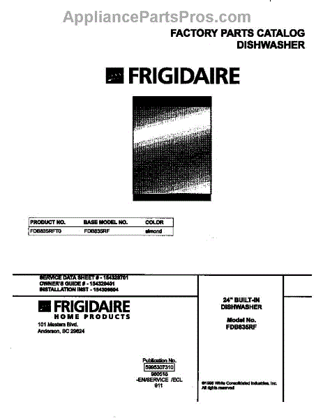 Parts for Frigidaire FDB835RFT0: 01 - Cover Parts
