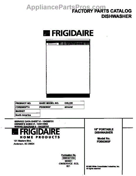 Parts for Frigidaire FDB836GFT4: 01 - Cover Parts