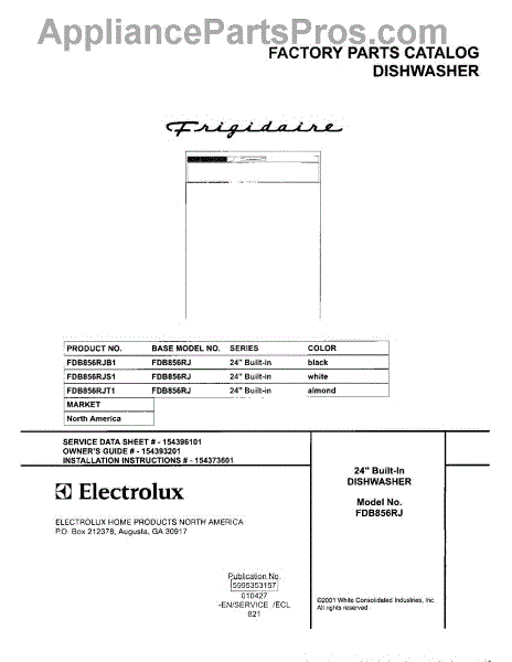 Parts for Frigidaire FDB856RJB1: 01 - Cover Parts
