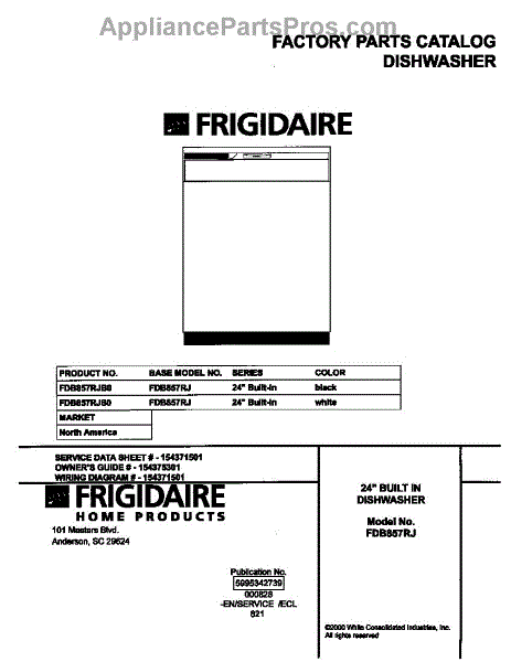 Parts for Frigidaire FDB857RJB0: 01 - Cover Parts