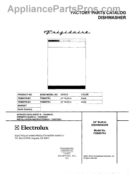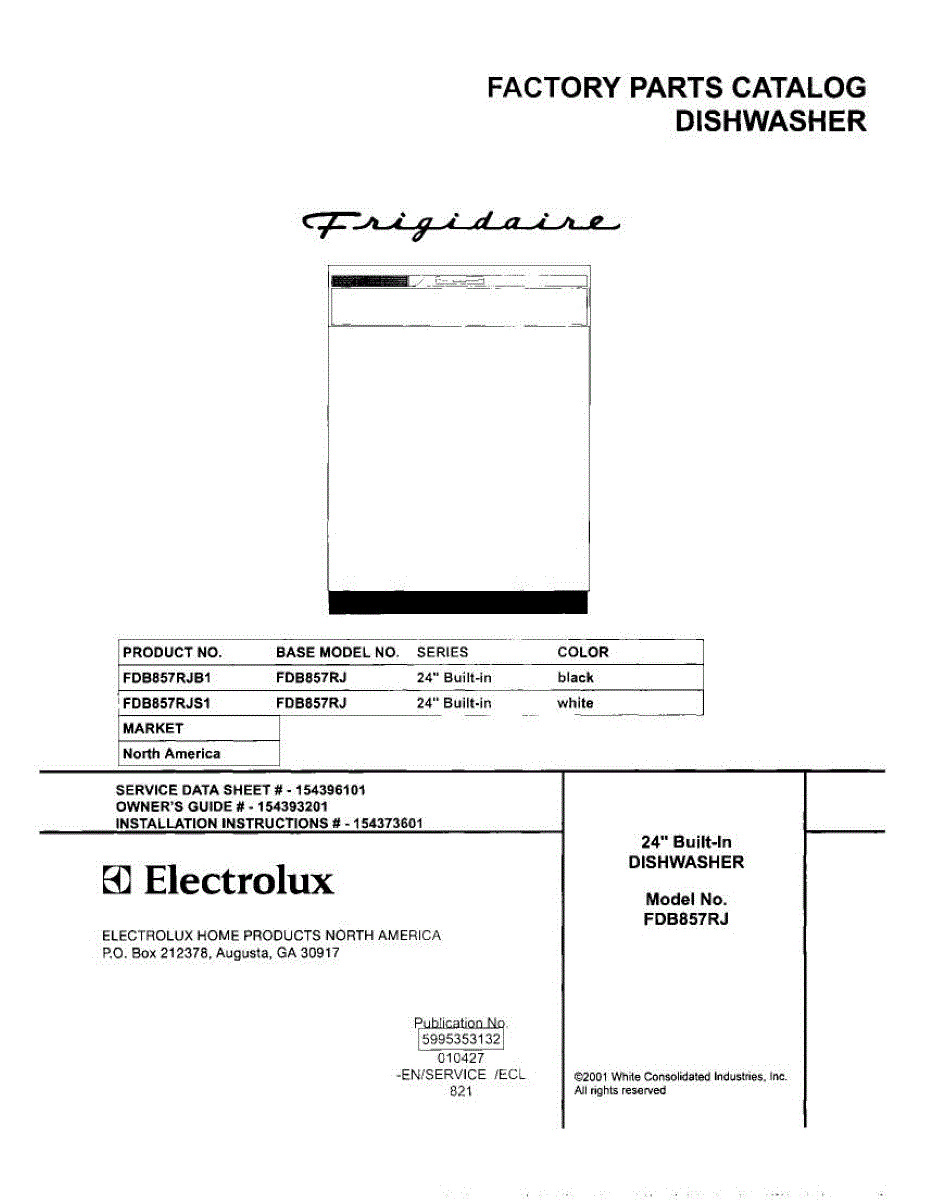 Parts for Frigidaire FDB857RJB1: 01 - Cover Parts