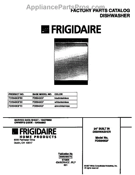 Parts for Frigidaire FDB949GFT0: 01 - Cover Parts
