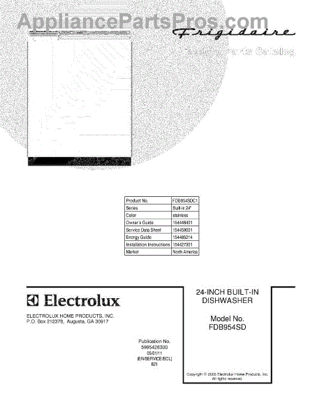 Parts for Frigidaire FDB954SDC1: 01 - Cover Parts