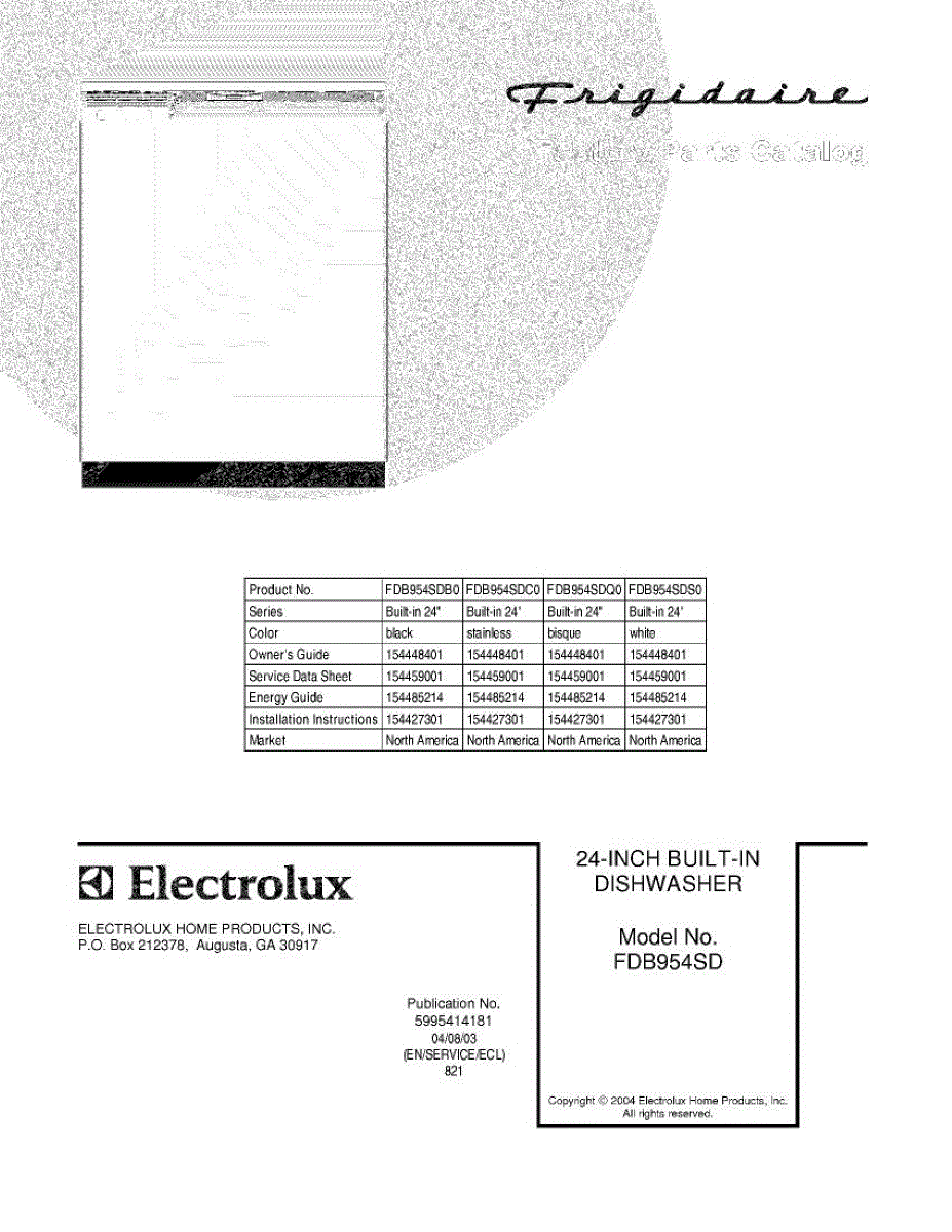 Parts for Frigidaire FDB954SDS0: 01 - Cover Parts