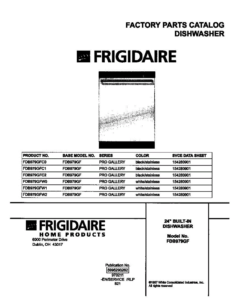 Parts for Frigidaire FDB979GFW1: 01 - Cover Parts