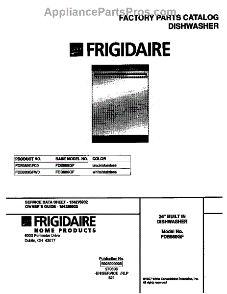 Parts for Frigidaire FDB989GFC0: 01 - Cover Parts