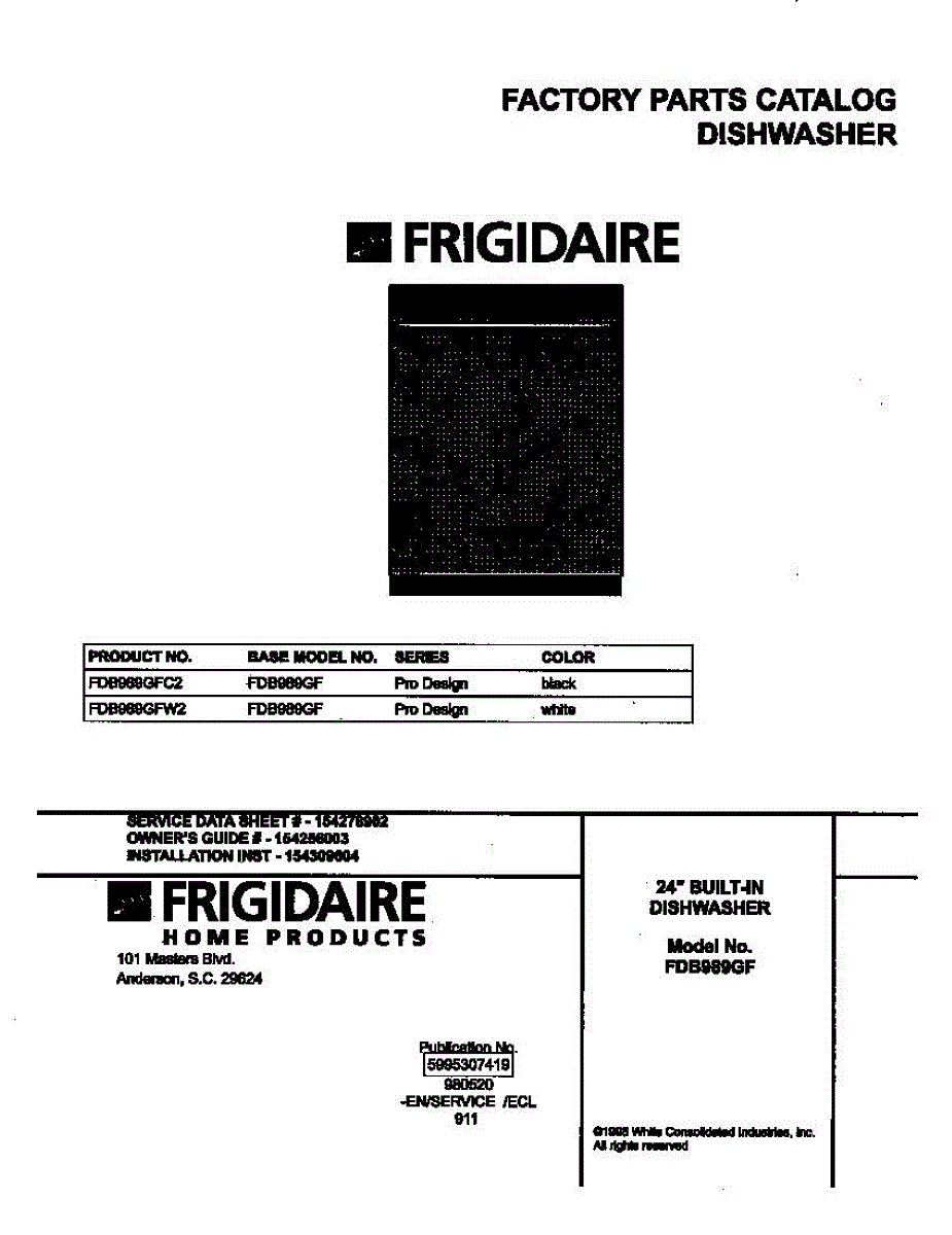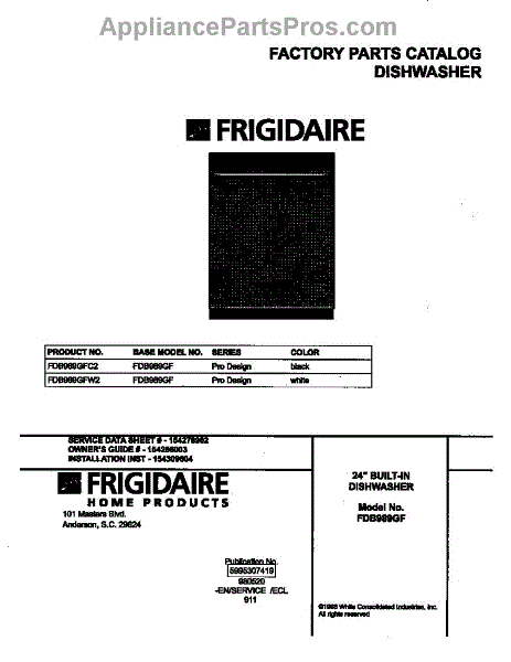 Parts for Frigidaire FDB989GFW2: 01 - Cover Parts