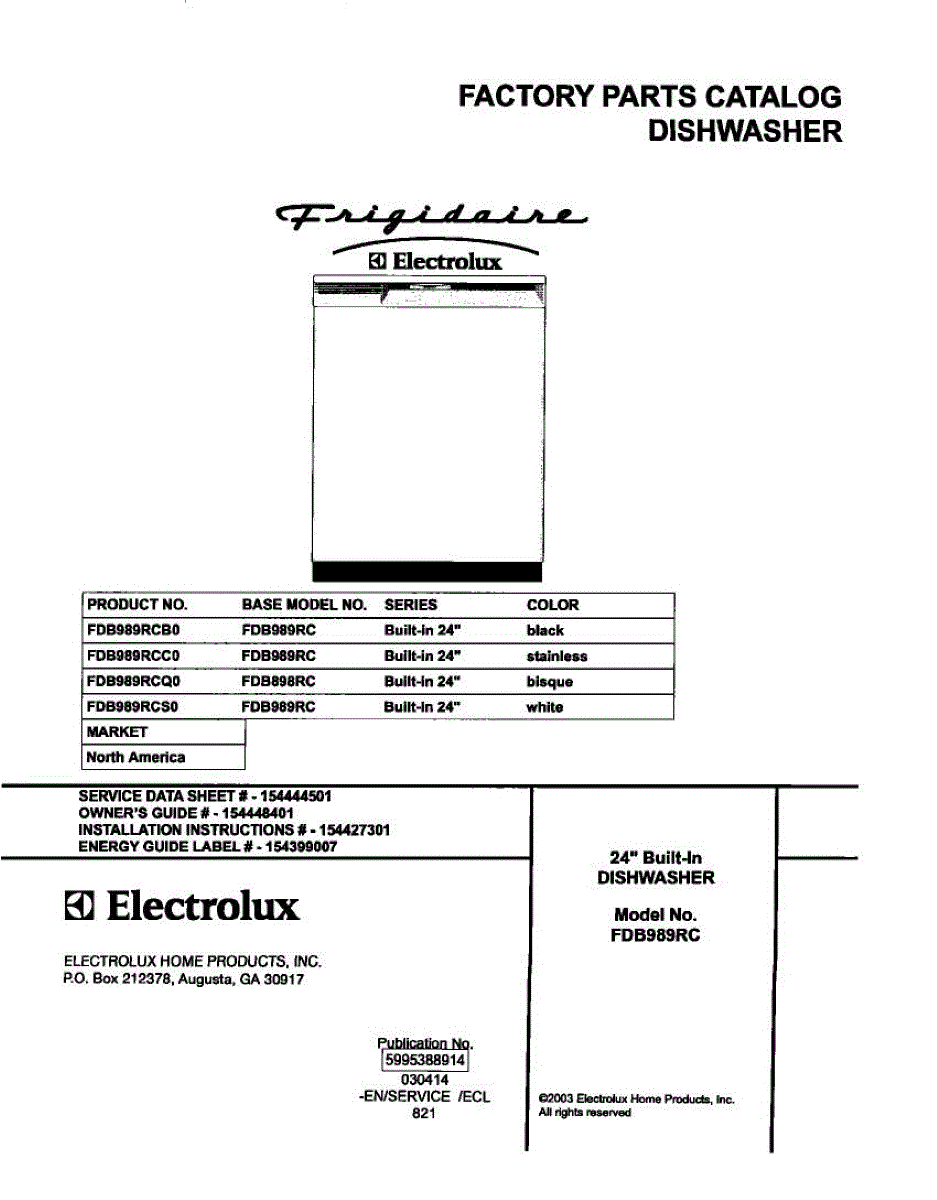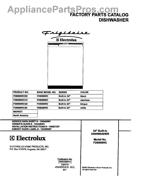 Parts for Frigidaire FDB989RCB0: 01 - Cover Parts