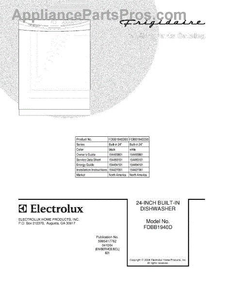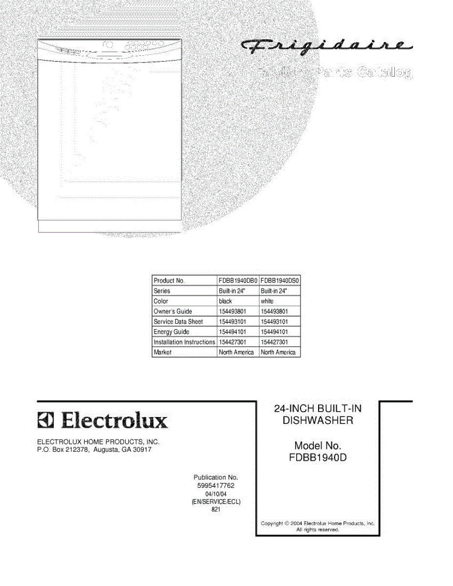 Parts for Frigidaire FDBB1940DS0: 01 - Cover Parts