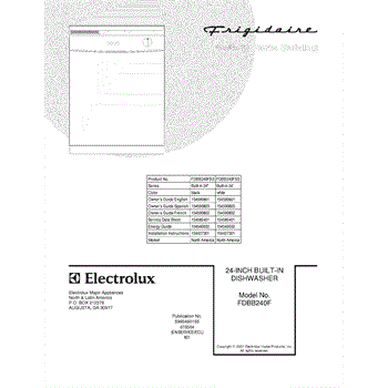 Parts for Frigidaire FDBB240FS3: 01 - Cover Parts