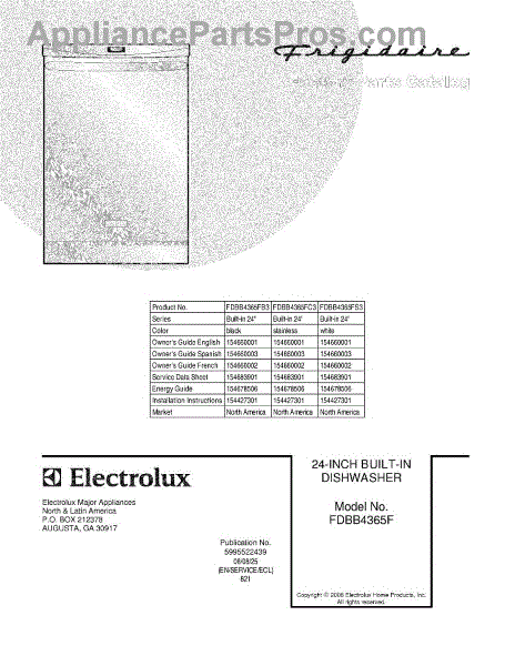 Parts for Frigidaire FDBB4365FS3: 01 - Cover Parts
