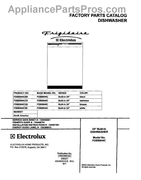 Parts for Frigidaire FDBB944CQ0: 01 - Cover Parts