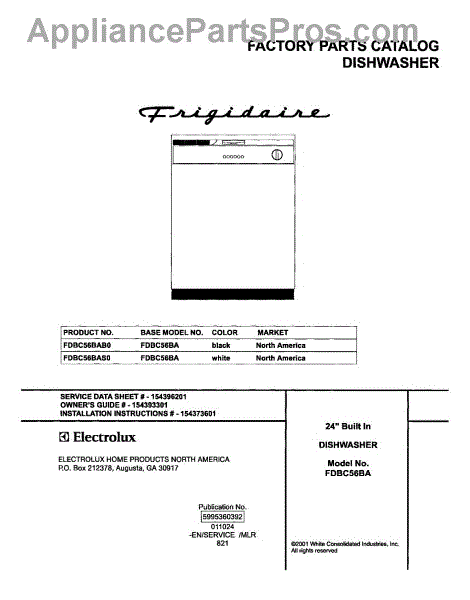 Parts for Frigidaire FDBC56BAB0: 01 - Cover Parts