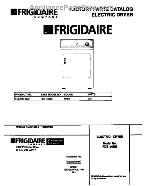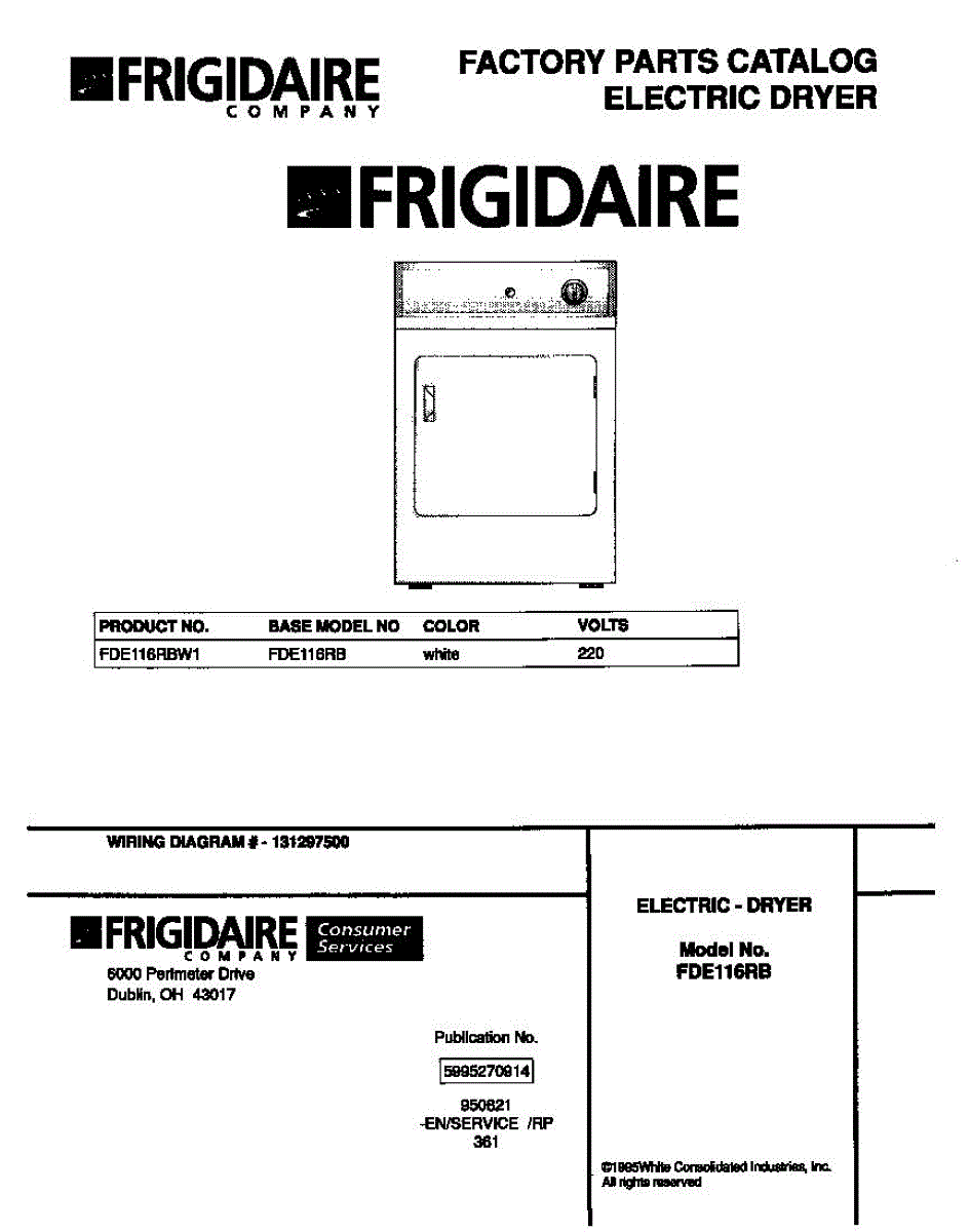 Parts for Frigidaire FDE116RBW1: 01 - Cover Parts