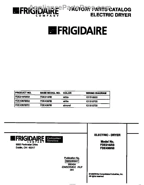 Parts for Frigidaire FDE216RBS2: 01 - Cover Parts