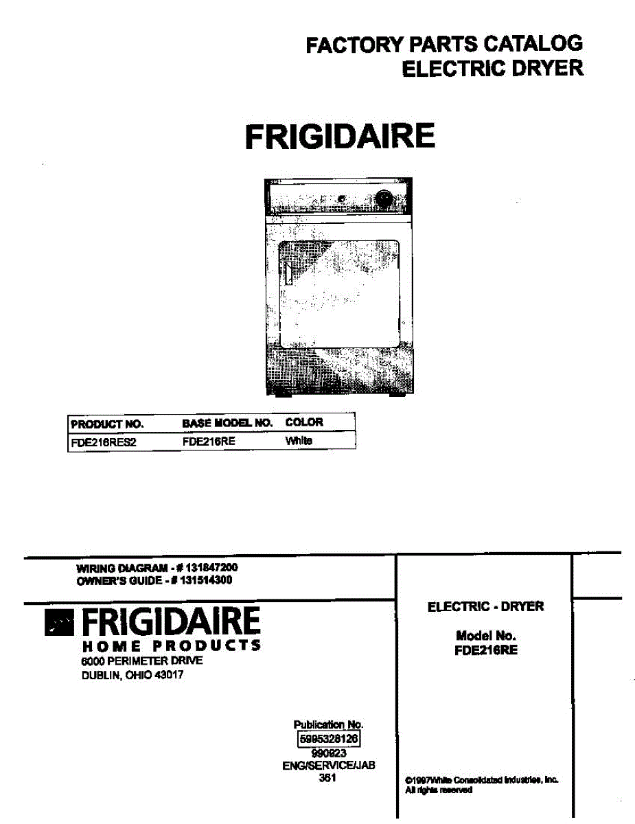 Parts for Frigidaire FDE216RES2: 01 - Cover Parts