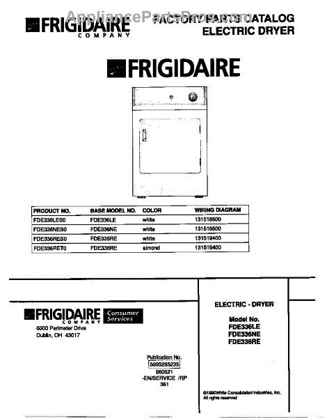 Parts for Frigidaire FDE336NES0: 01 - Cover Parts