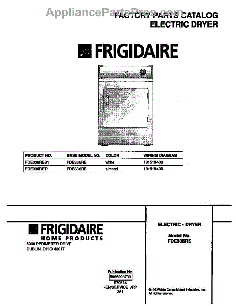 Parts for Frigidaire FDE336RES1: 01 - Cover Parts