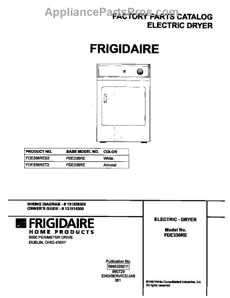 Parts for Frigidaire FDE336RET2: 01 - Cover Parts