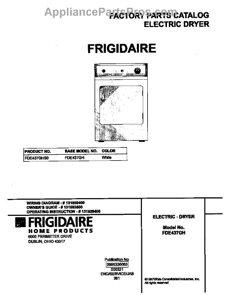 Parts for Frigidaire FDE437GHS0: 01 - Cover Parts