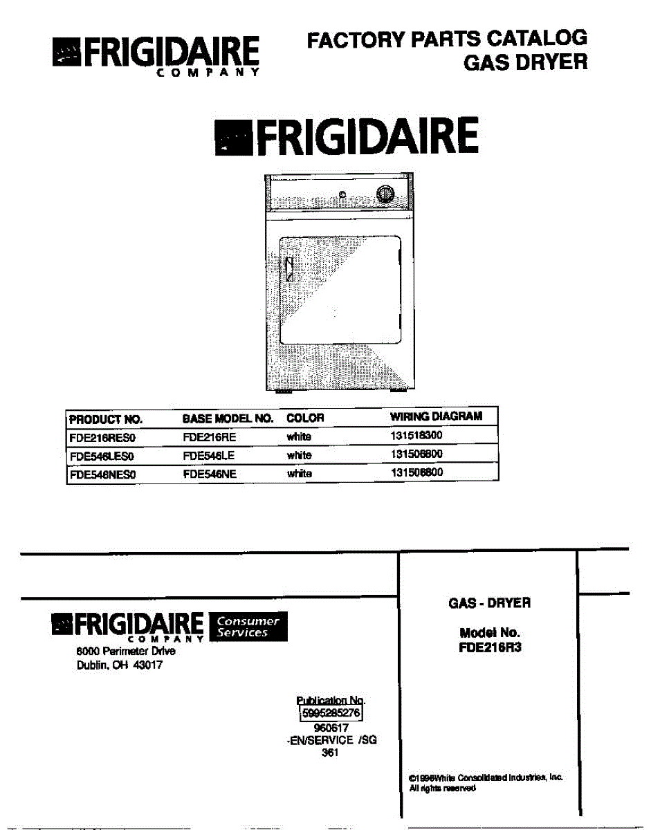 Parts for Frigidaire FDE546LES0: 01 - Cover Parts