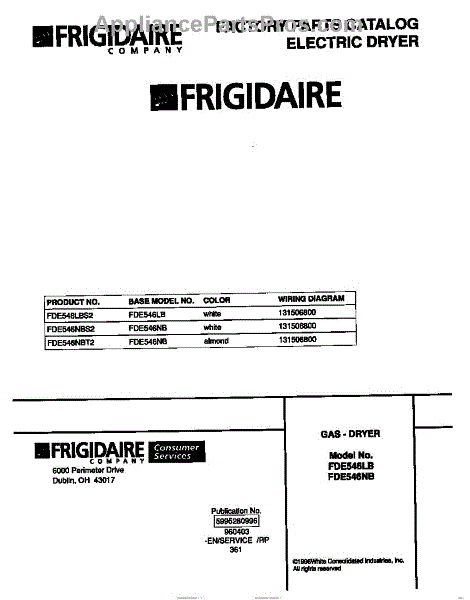 Parts for Frigidaire FDE546NBS2: 01 - Cover Parts