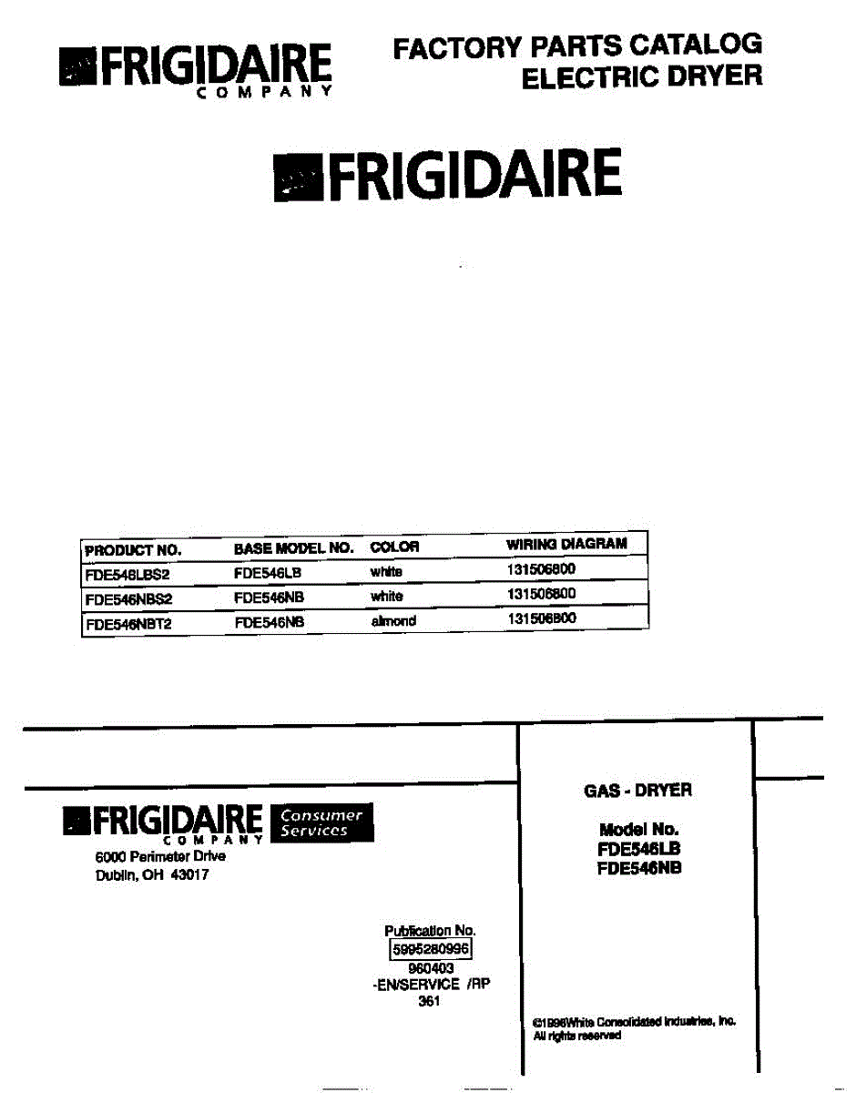 Parts for Frigidaire FDE546NBT2: 01 - Cover Parts