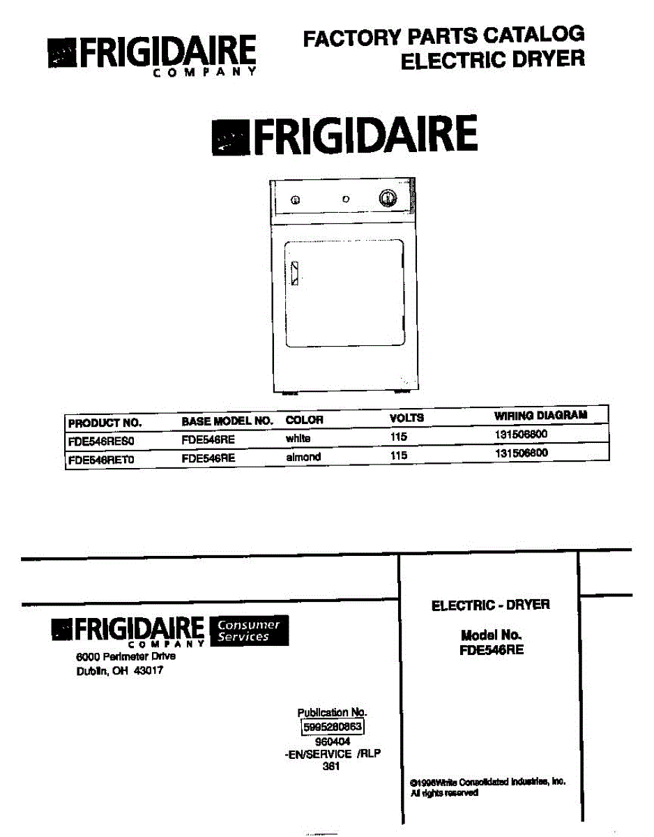Parts for Frigidaire FDE546RES0: 01 - Cover Parts