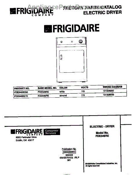 Parts for Frigidaire FDE546RET0: 01 - Cover Parts