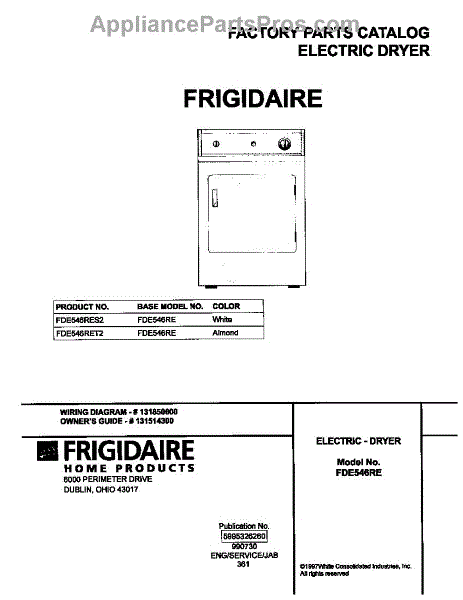 Parts for Frigidaire FDE546RET2: 01 - Cover Parts