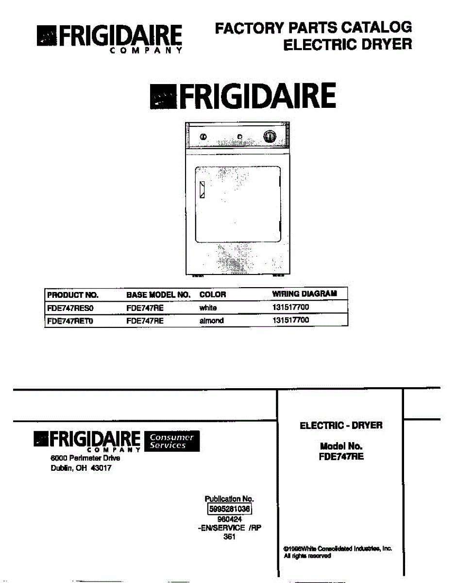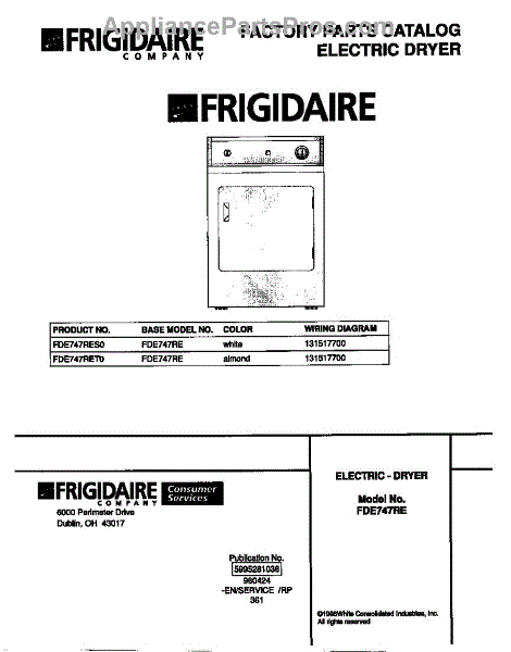 Parts for Frigidaire FDE747RET0: 01 - Cover Parts