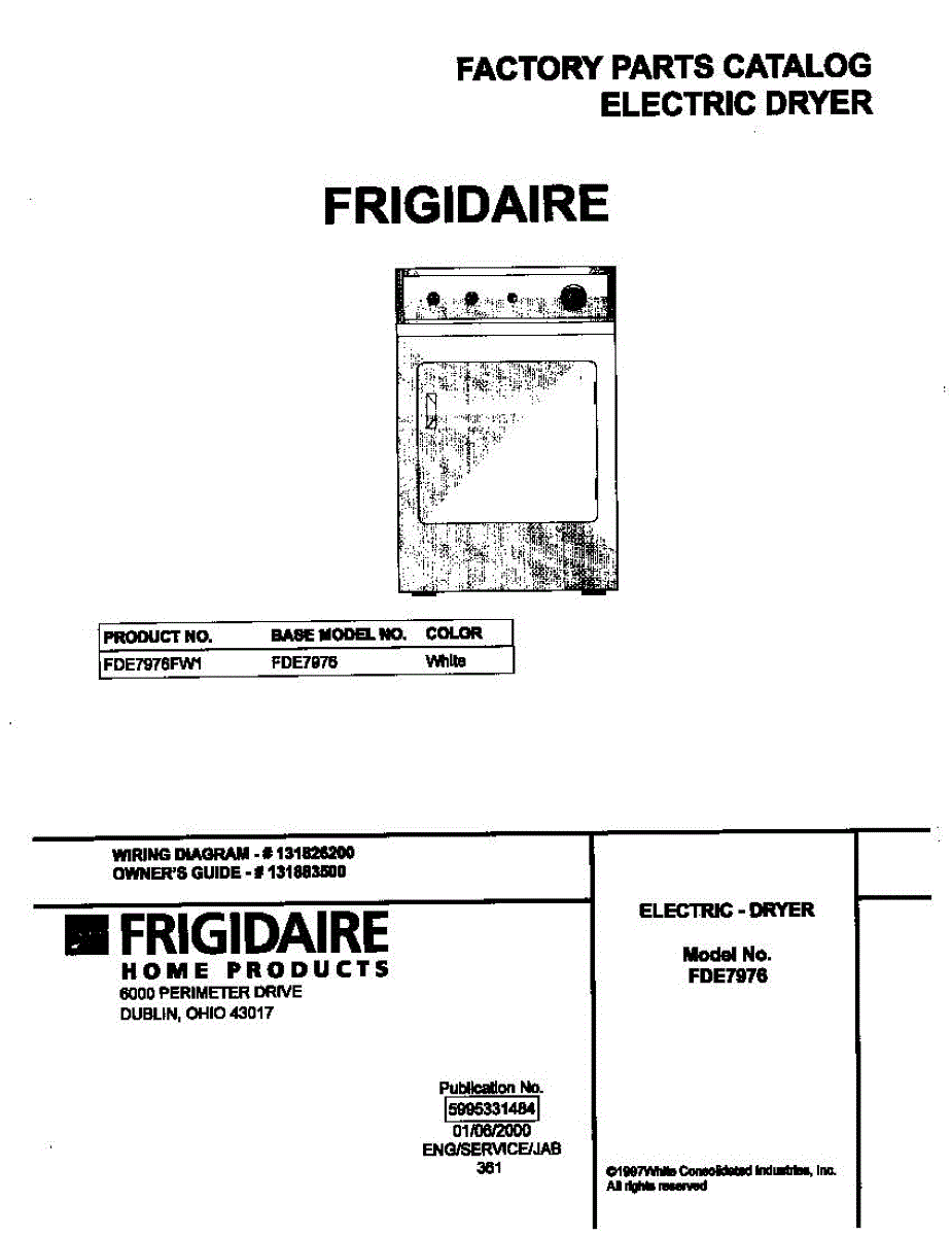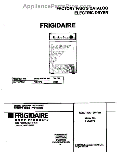 Parts for Frigidaire FDE7976FW1: 01 - Cover Parts