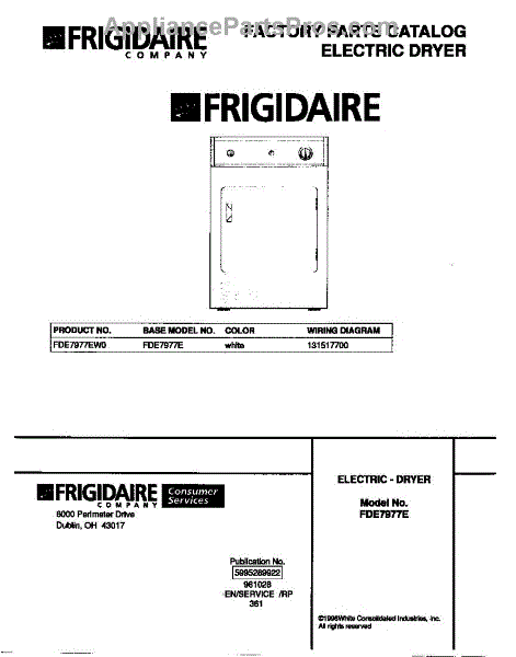 Parts for Frigidaire FDE7977EW0: 01 - Cover Parts