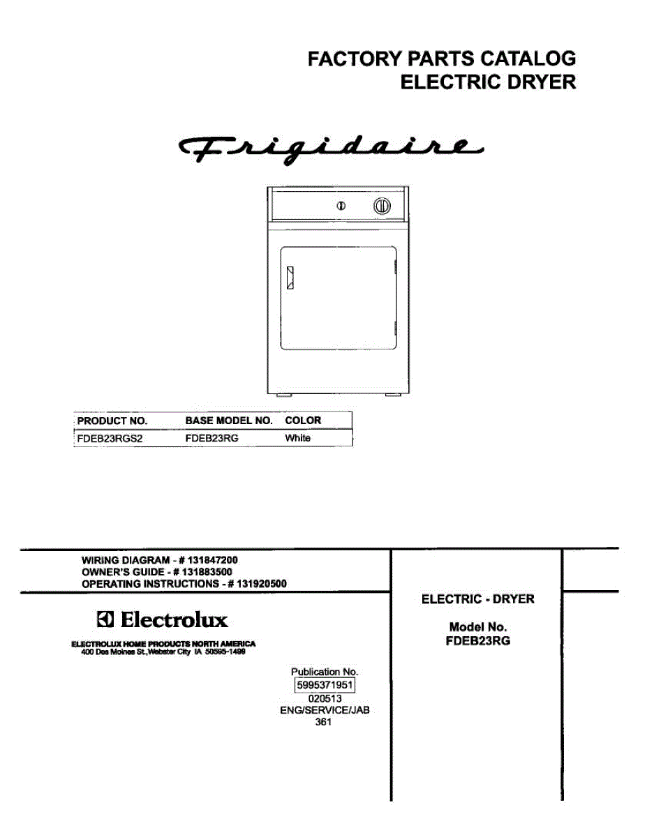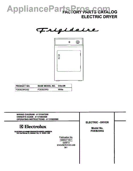 Parts for Frigidaire FDEB23RGS2: 01 - Cover Parts