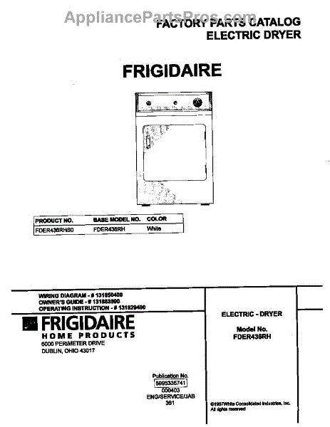 Parts for Frigidaire FDER436RHS0: 01 - Cover Parts