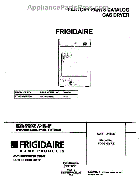 Parts for Frigidaire FDG336MRES0: 01 - Cover Parts