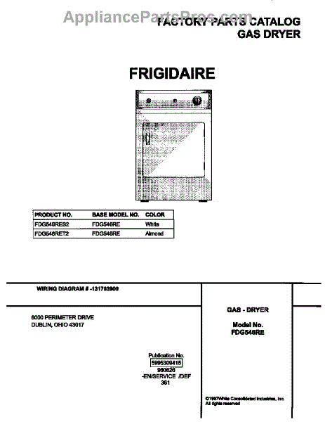 Parts for Frigidaire FDG546RES2: 01 - Cover Parts
