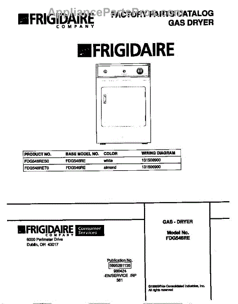 Parts for Frigidaire FDG546RET0: 01 - Cover Parts