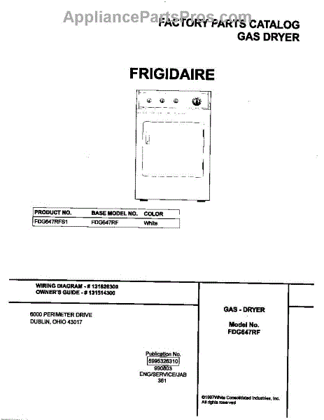 Parts for Frigidaire FDG647RFS1: 01 - Cover Parts